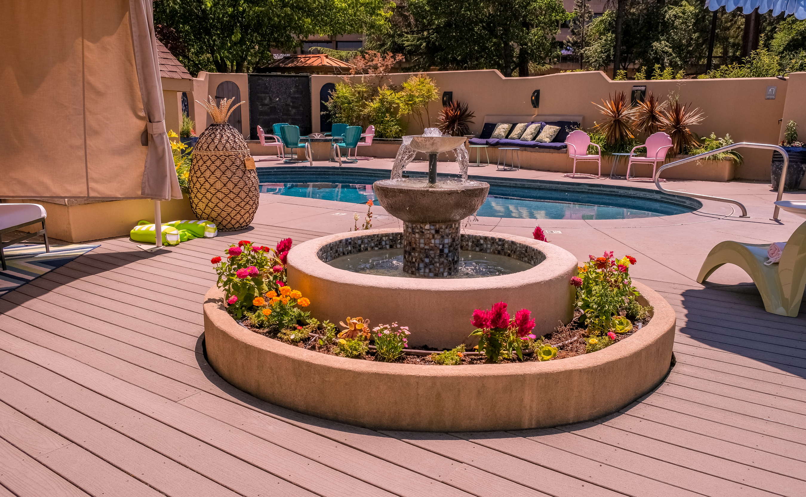 Drawn to the beauty of artistic expression, we felt an irresistible urge to fashion our new courtyard into a captivating mosaic masterpiece. We engaged the talents of local artist Krysta Bannis to weave a design mirroring the essence and vitality of our vision: